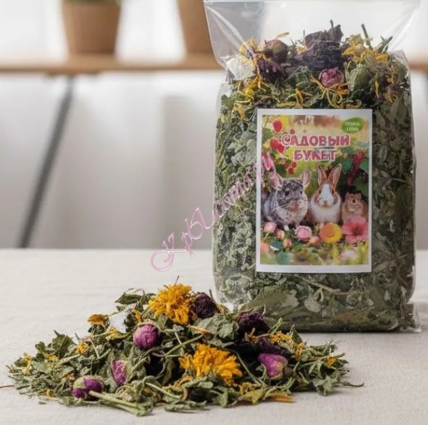 Садовый букет — это не просто корм, а тщательно составленная композиция из 100% натуральных сушеных листьев и цветов. Каждый ингредиент собран и высушен с заботой, чтобы подарить вашему питомцу не только удовольствие от вкуса, но и ощутимую пользу для здоровья.Мы верим, что лучшая диета — это диета, максимально приближенная к природной. Именно поэтому в основе нашего микса — проверенные веками растения, которые в дикой среде составляют часть естественного рациона грызунов. «Садовый букет» — это возвращение к истокам, обогащённое знанием об их потребностях. Что внутри этого полезного великолепия? Листья малины и смородины — основа «букета». Это не только вкуснейшее лакомство, но и ценный источник натуральных витаминов, танинов и клетчатки. Они способствуют здоровому пищеварению и являются природным тонизирующим средством. Цветы гибискуса (суданской розы) — добавляют миксу яркую кислинку и рубиновые оттенки. Богаты витамином C и органическими кислотами, которые поддерживают иммунитет и Vitality вашего питомца. Бутоны роз — настоящее лакомство с нежным ароматом. Содержат эфирные масла и флавоноиды, известные своими антиоксидантными и успокаивающими свойствами. Цветки календулы — «солнечные» нотки в нашем букете. Природный антисептик, традиционно используемый для поддержания здоровья желудочно-кишечного тракта и красивой, здоровой шерстки. Почему «Садовый букет» — это правильный выбор? Это корм, в котором нет места сомнениям. Без зерна, без искусственных добавок, красителей и консервантов. Только чистые, отборные дары природы, собранные в идеальной пропорции. Он идеально подходит для ежедневного дополнения рациона или в качестве поощрительного лакомства для самых привередливых гурманов. Подарите своему любимцу — будь то пушистая шиншилла, любознательный кролик, добродушная морская свинка или энергичный дегу — вкус летнего сада и заботу в каждой щепотке. Попробуйте «Садовый букет» — и вы увидите, как он нравится вашему любимцу! Это та радость и польза, которые они заслуживают. Состав: сушеные листья малины, листья смородины, цветы гибискуса, бутоны роз, цветки календулы.